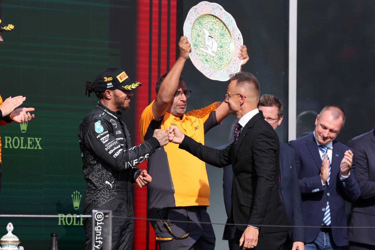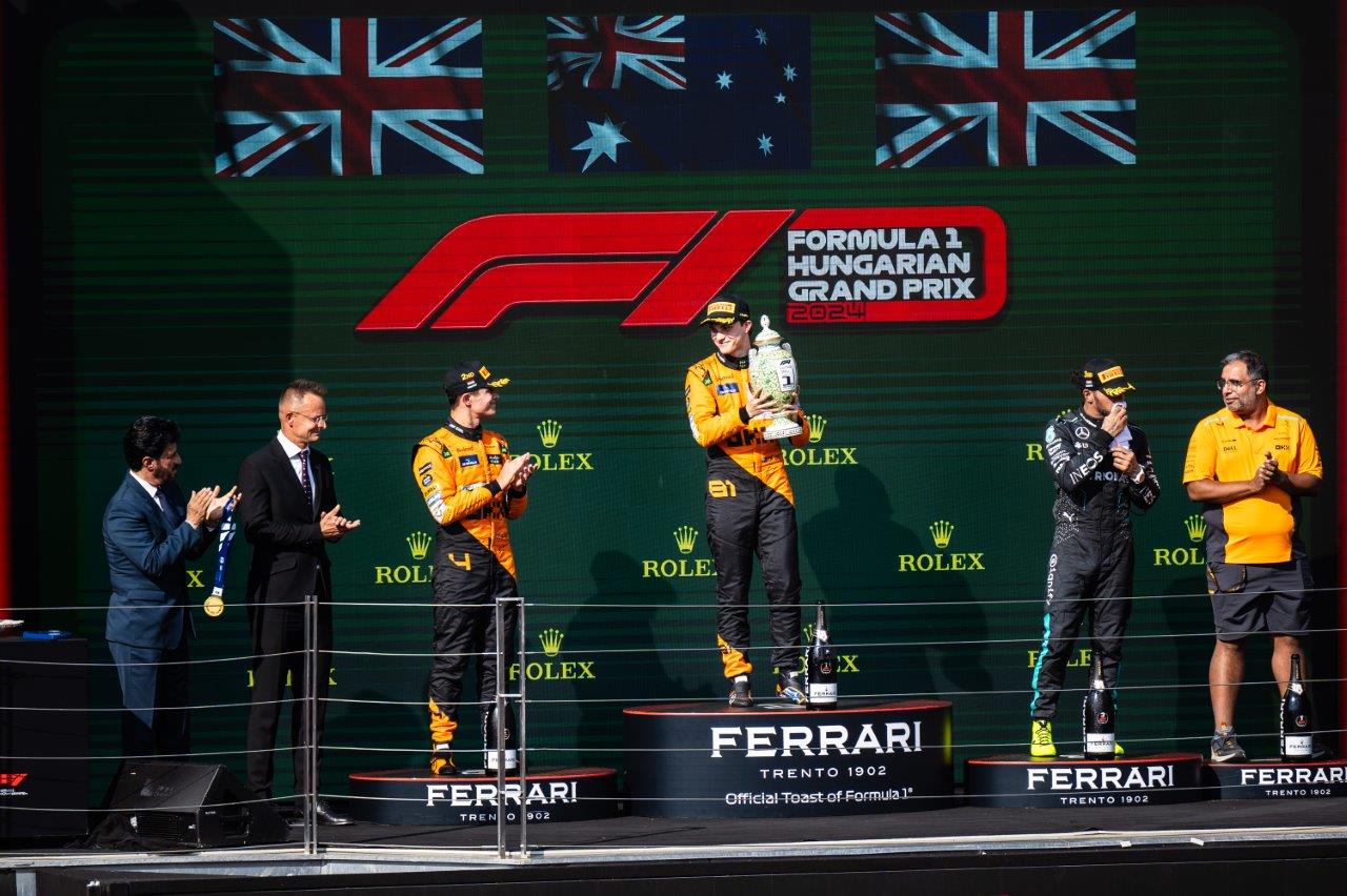 Ezúttal Oscar Piastri (McLaren) aratott győzelmet a Formula–1-es Magyar Nagydíjon, Másodikként Lando Norris (McLaren) szelte át a célvonalat, míg harmadikként Lewis Hamilton (Mercedes) végzett. A konstruktőri tálat így a McLaren csapat nyerte.