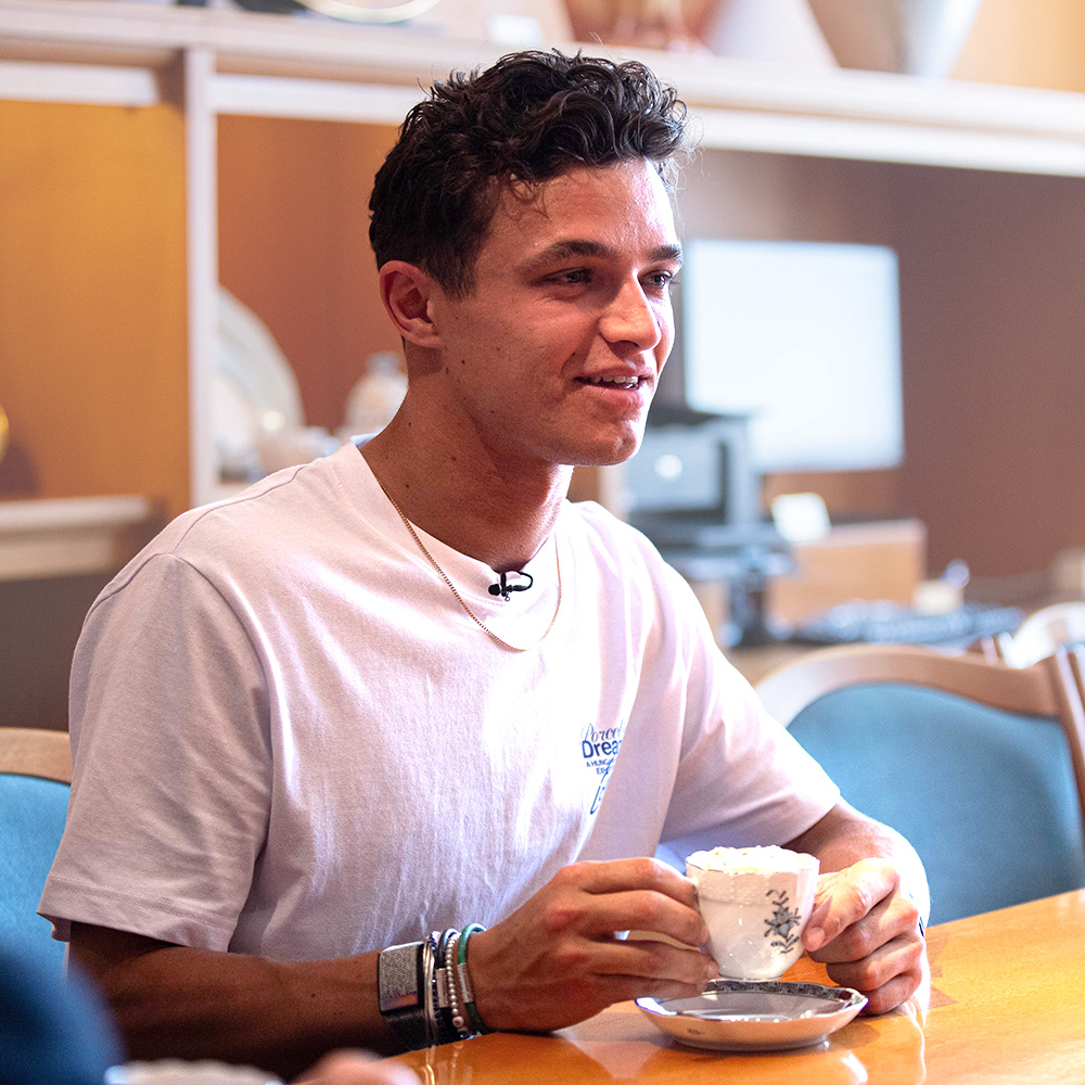 A Herendi Porcelánmanufaktúra egyedi mintával készítette el Lando Norris Forma–1-es versenyző magyarországi futamon használt versenysisakját, amit az F1 pilóta Herenden dedikált.